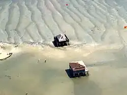En el centro de la bahía se encuentran la Île aux oiseaux (‘Isla de los pájaros’) y las cabañas tchanquées.