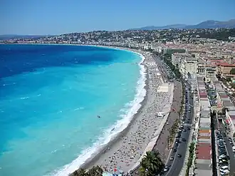 ![]() Vista de la bahía, rodeada por el Paseo de los Ingleses | ||