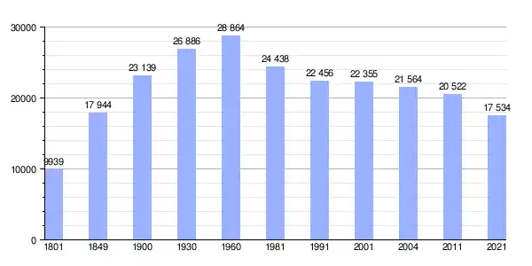 Gráfica de evolución demográfica de Baião entre 1801 y 2021