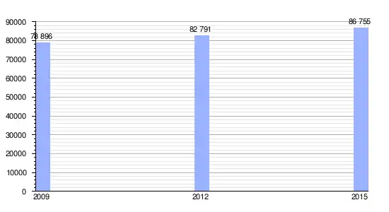 | Gráfica de evolución demográfica de Bainet entre 2009 y 2015 |