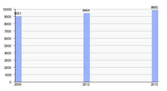| Gráfica de evolución demográfica de Bais d'Orange entre 2009 y 2015 |