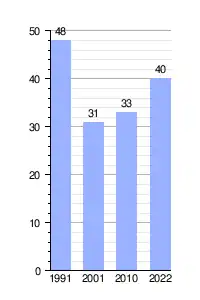 El censo 2022 registró una población de 40 habitantes que se repartieron entre 19 hombres y 21 mujeres. Sin embargo, las cifras obtenidas fueron estimativas solo teniendo en cuenta a la población en viviendas particulares; es decir, excluyendo del dato a la población institucional y las personas sin hogar. Gracias a este censo también fue posible conocer su densidad y tamaño urbano.[2]