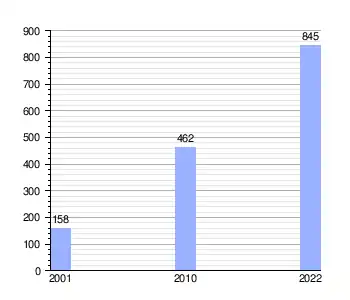 El censo 2022 registró una población de 845 habitantes que se repartieron entre 442 hombres y 403 mujeres. Sin embargo, las cifras obtenidas fueron estimativas solo teniendo en cuenta a la población en viviendas particulares; es decir, excluyendo del dato a la población institucional y las personas sin hogar. Gracias a este censo también fue posible conocer su densidad y tamaño urbano.[1]