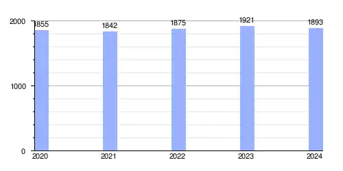 Hasta 2024 la población era de 1893 habitantes,[2] con una densidad de población de 30,57 hab/km².[2]