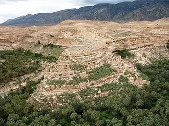 Pueblo bereber, palmeral y acantilado -