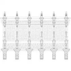 - Balaustres: unidos con arquillos, a veces seguía una faja estrecha de pequeños tableros sobre la que se asentaban los canecillos entablados que recibían la torta de barro de la cubierta.