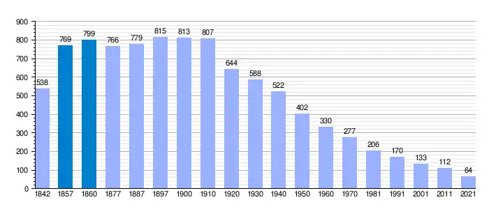 | Gráfica de evolución demográfica de Baldellou[5] entre 1842 y 2021 |