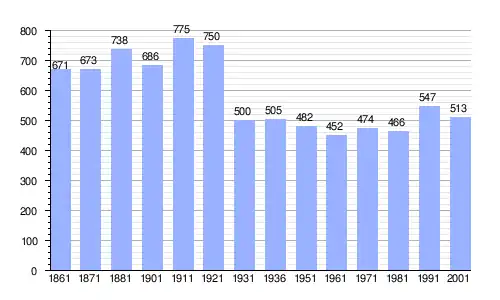 | Gráfica de evolución demográfica de Baldissero Canavese entre 1861 y 2001 |