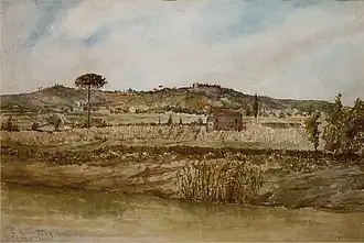 [...] Larga y sutil zona de vapores atravesada de cipreses del Monte Mario, come capigliature fluenti en una pátina de bronce.Gabriele D'Annunzio, "Il piacere", 1889