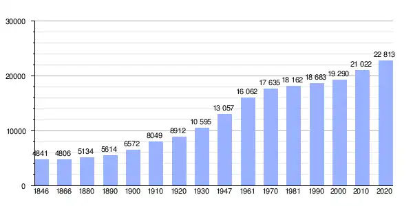 Todos los datos históricos relativos al actual municipio, el siguiente gráfico refleja su evolución demográfica, incluyendo municipios después de efectuada la fusión el 1 de enero de 1977.