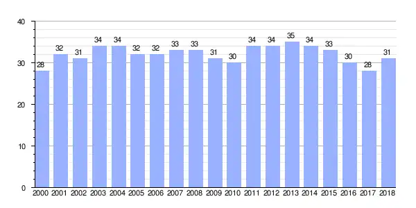 | Gráfica de evolución demográfica de Baliño entre 2000 y 2018 |