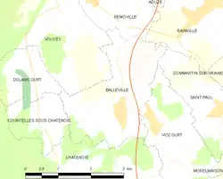 Balléville es una población y comuna francesa, en la región de Lorena, departamento de Vosgos, en el distrito de Neufchâteau y cantón de Châtenois.