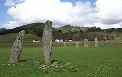 Consta de una avenida de dos filas de menhires con 4 y 2 piedras cada una, un círculo de piedras, y un henge con un pequeño túmulo funerario.[1] La construcción del círculo y los menhires se remonta a hace más de 4000 años. La piedra más alta mide 4 metros de altura. Las dos piedras del medio de la fila de 4 están esculpidas con marcas de cazoleta y anillos.[2] El complejo está clasificado como monumento protegido por el organismo consultivo escocés "Historic Environment Scotland".[2] El yacimiento se encuentra en unas tierras de labor de propiedad privada, pero se puede acceder a través de una serie de caminos que discurren entre vallas.