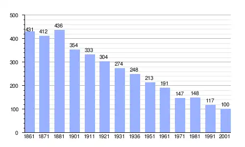 | Gráfica de evolución demográfica de Balmuccia entre 1861 y 2001 |