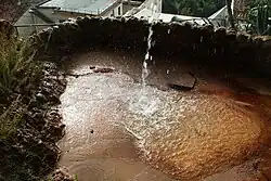 - El manantial. Las aguas emergen a una temperatura de más de 50 °C. El caudal del acuífero surge de dos manantiales fisicoquímicamente similares, siendo de unos 1700 l/m para el balneario Gustavo Adolfo Bécquer y de unos 850 l/m para el balneario Virrey Palafox.[3]