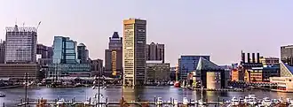 Durante la década de 1970, la zona del centro de Baltimore conocida como Inner Harbor, había sido descuidada y sólo estaba ocupada por un conjunto de almacenes abandonados. Los esfuerzos para sanear el centro de la ciudad se iniciaron con la construcción del Centro de Convenciones de Baltimore, que se inauguró en 1979. El Harborplace abrió en 1980, seguido por el Acuario Nacional de Baltimore, el destino turístico más grande de Maryland, y el Museo de la Industria de Baltimore en 1981. En 1992, el equipo de béisbol Baltimore Orioles se trasladó del Memorial Stadium al Oriole Park at Camden Yards, situado en el centro, cerca del puerto. Seis años más tarde, el equipo de fútbol americano Baltimore Ravens se cambió al M&T Bank Stadium, junto al Camden Yards.[21]