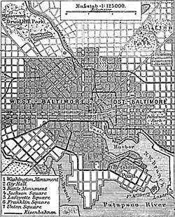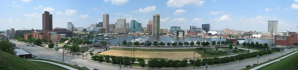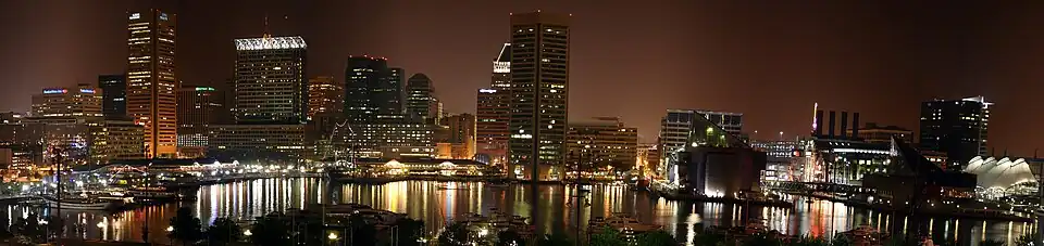 | Otros nombres: Charm City,[4] Mob Town,[5] B'more, Bodymore,[6] The City of Firsts,[7] Monument City,[8][9] Ravenstown[10] | ||||