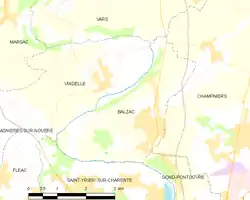 - ↑ INSEE, Datos de población para el año 2012 de Balzac (en francés).