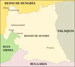 El Banato de Severin era una marca (o provincia fronteriza) del Reino medieval de Hungría entre el bajo Danubio y el río Olt (en la actual Oltenia en Rumania).[1][2][3] Una carta de concesión, emitida el 2 de junio de 1247 para los caballeros hospitalarios, mencionaba el Olt como su frontera oriental.[1] Los caballeros recibieron la «Tierra de Severin» (Terra de Zeurino),[4] junto con las montañas cercanas, por parte de Bela IV de Hungría.[1][5] El rey había descrito la misma región como una tierra «desierta y despoblada» en una carta al papa Gregorio IX el 7 de junio de 1238.[6] Los académicos modernos suponen que la conquista húngara del territorio o los enfrentamientos entre Bulgaria y Hungría habían obligado a la población local a huir.[6] El historiador László Makkai dice que, obviamente, la población comenzó a aumentar a fines de la década de 1230, porque Bela pidió al papa que nombrara un obispo para Severin.[7]