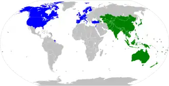 ![]() Miembros de la zona Asia-Pacífico en azul, resto en rojo. | ||