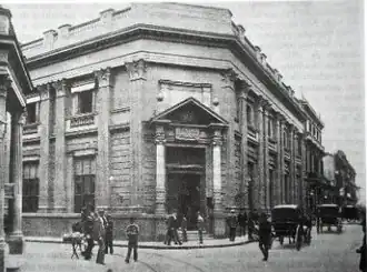 ![]() Fachada del Banco de Londres y Río de la Plata (en Piedad y Reconquista), c. 1880. | ||||