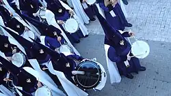 En 1976, la procesión se abriría con la Banda de Cabecera formada por unos 35 músicos (cinco trompetas, tres trombones, un bombardino y diez cornetas para el viento; ocho tambores cuatro timbales, un bombo y platillos en la percusión).