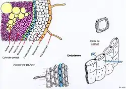- Vía apoplástica: las sustancias entran por difusión a través del apoplasto, y pueden llegar hasta el cilindro vascular; por eso la banda de Caspary tapona el paso de agua, y por tanto las sustancias que se hallen en ella.