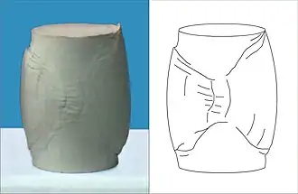 Las bandas de cizallas simples (una sola banda en diagonal) son un elemento "clásico" de la mecánica de suelos.[3]