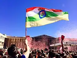 El 1 de julio de 1979 tras el homenaje a Carmen Medrano (cantante de Carmen, Jesús e Iñaki, grupo que puso banda sonora a la lucha por la autonomía) se improvisó una manifestación que al llegar al palacete de la diputación provincial colocó en su verja la bandera pidiendo su oficialización.[5]