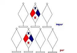 Según la Ley número 34 del 15 de diciembre de 1949, reformada por la Ley 2 de 2012, la bandera de Panamá es descrita de la siguiente forma:[10]