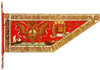 En abril de 1700, Pedro I ordenó a la Armería del Kremlin que construyera estandartes marinos de color blanco, rojo y violeta.[14]​ El diseño y las dimensiones de estos estandartes corresponden a la figura y el tamaño del estandarte del regimiento que se conserva entre los otros 352 estandartes rusos trofeo en la tumba de los reyes suecos: la iglesia de Riddarholmen en Estocolmo.[15]