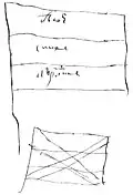 En octubre de 1699, Pedro I, en el reverso de una hoja con instrucciones enviadas al enviado ruso Yemelyan Ukraintsev en Estambul, dibujó un boceto de una bandera de tres bandas blanca, azul y roja.[13]