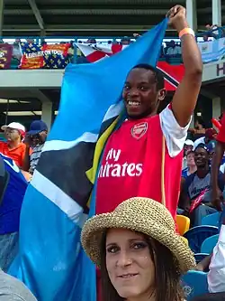 El color azul representa fidelidad y lealtad, el cielo tropical y las aguas del Mar Caribe y el Océano Atlántico. El dorado representa la prosperidad, la riqueza, la playas y el sol del Caribe. El negro y el blanco representan la mezcla de razas que le dieron identidad a la isla, y donde la mayor área de color negro indica la gran influencia de esta raza en la idiosincrasia del país.