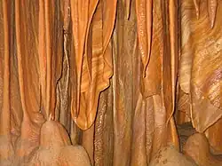 Banderola, bandera, velo, alas de ángel, cortinajes, pañuelos, estalactita tipo bandera, y otros,[1] son términos que hacen mención a un tipo de espeleotema que se forma de manera similar a las estalactitas cónicas o clásicas, pero con la particularidad de que el agua no circula por el interior de las mismas, sino por el exterior, creciendo y engrosando lateralmente. El crecimiento ondulado es debido a las curvas de la roca que se van haciendo mayores según la bandera se aleja de la pared.[2]