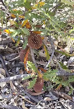 - ↑ «Banksia aculeata». Tropicos.org. Missouri Botanical Garden. Consultado el 16 de enero de 2015.