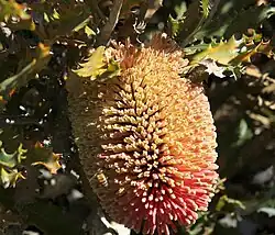 Banksia: nombre genérico que fue otorgado en honor del botánico inglés Sir Joseph Banks, quien colectó el primer espécimen de Banksia en 1770, durante la primera expedición de James Cook.
