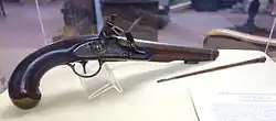 En el otro extremo tenía varios pasos de rosca en forma de tornillo, donde se aseguraban los útiles destinados a descargar o limpiar el cañón. Antiguamente, la baqueta era de madera y esa mejora tan obvia de hacerlas de hierro se introdujo, o no se propagó al menos, por primera vez en el regimiento de Anhalt prusiano hacia 1700 para sustituir a las baquetas de madera y a partir de 1718 en todo el ejército prusiano, coincidiendo con las reformas tácticas de Federico II de Prusia que contribuyeron a aumentar la cadencia de fuego y al empleo en las grandes formaciones. Esta mejora cayó en desuso con la aparición del fusil de aguja en 1866 y en el mismo país de Federico.