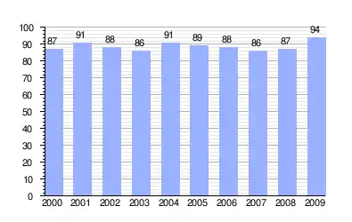 | Gráfica de evolución demográfica de Baríndano entre 2000 y 2009 |