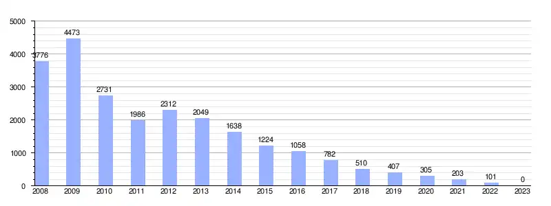 Esta estructura de la población es típica del régimen demográfico moderno, con una evolución hacia el envejecimiento de la población y la disminución de la natalidad anual.[13][14]