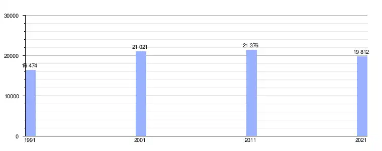 | Gráfica de evolución demográfica de Barañáin[10] entre 1991 y 2021 |