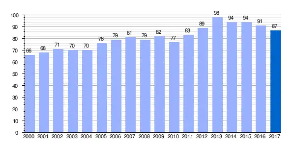 | Gráfica de evolución demográfica de Barajuén[8] entre 2000 y 2017 |