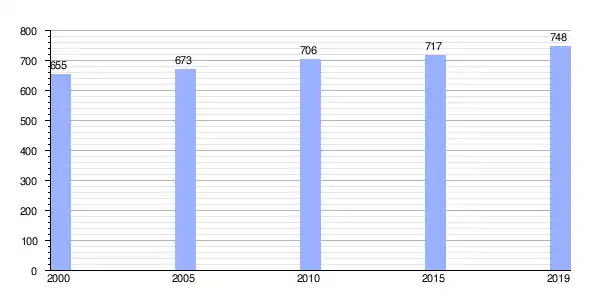 | Gráfica de evolución demográfica de Baralla (parroquia) entre 2000 y 2019 |