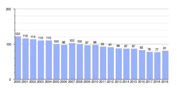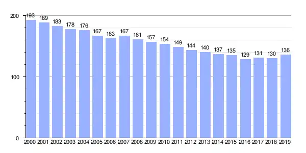 | Gráfica de evolución demográfica de Barazón (parroquia) entre 2000 y 2019 |