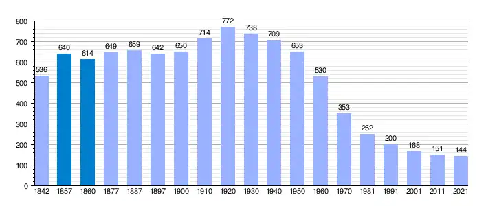 | Gráfica de evolución demográfica de Barbadillo del Mercado[9] entre 1842 y 2021 |