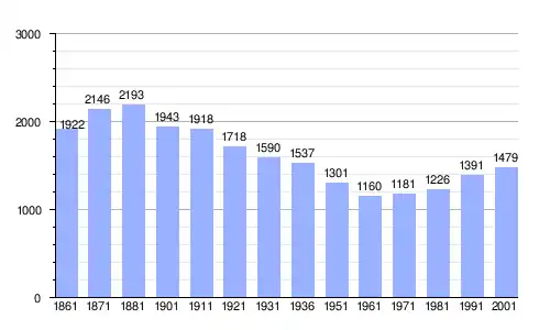 | Gráfica de evolución demográfica de Barbania entre 1861 y 2001 |