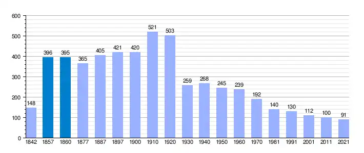 | Gráfica de evolución demográfica de Barbués[3] entre 1842 y 2021 |