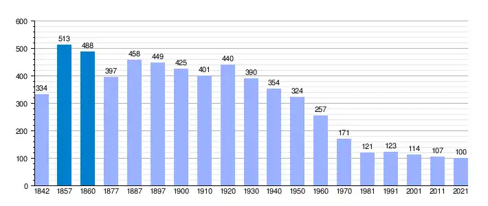 | Gráfica de evolución demográfica de Barbuñales[4] entre 1842 y 2021 |