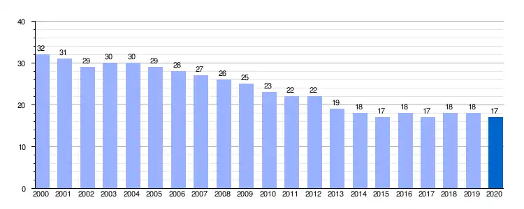 | Gráfica de evolución demográfica de Barcenilla de Pisuerga entre 2000 y 2020 |