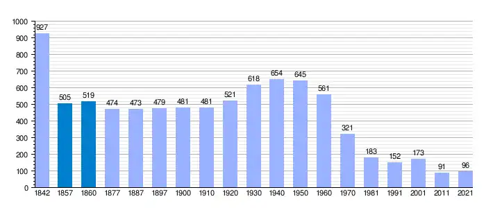 | Gráfica de evolución demográfica de Barchín del Hoyo[5] entre 1842 y 2021 |