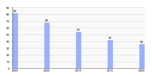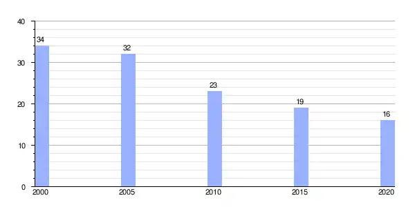 | Gráfica de evolución demográfica de Barcia (aldea) entre 2000 y 2020 |